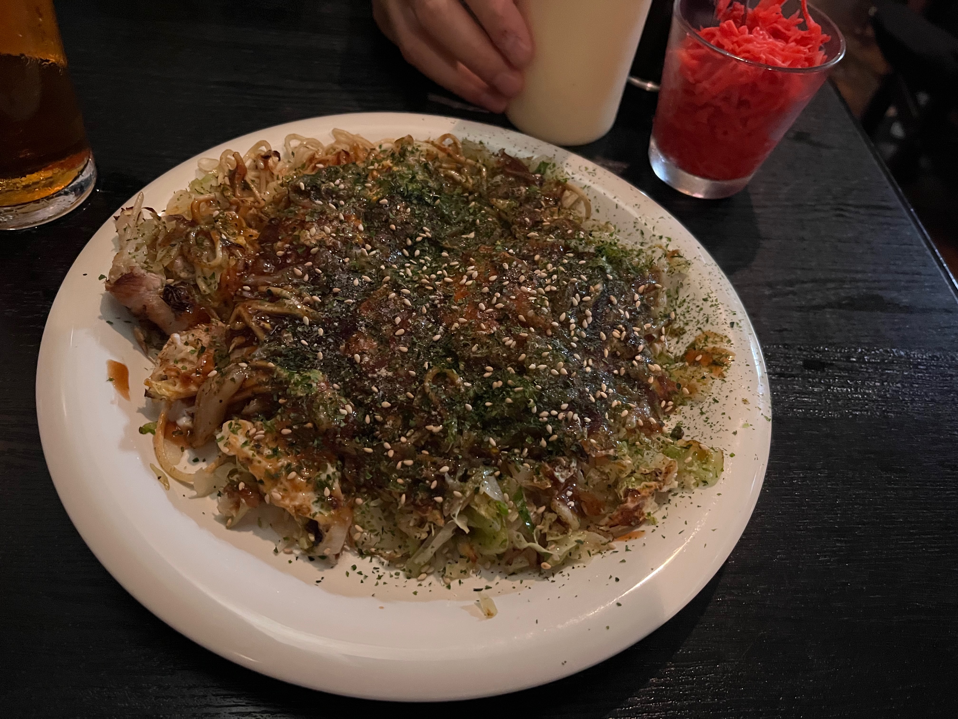 After that, we returned to Hassei. It was still small and crowded, clearly very popular. People from all over the world had left their greetings and signatures on the wall. And the Japanese pancake was the best I have ever had! Full of flavors, delicious yakisoba, sauces, and ingredients that created a perfect mixture in my mouth. By the way, it was very funny to find greetings on the wall from my home region — the Ruhr area is everywhere 😊